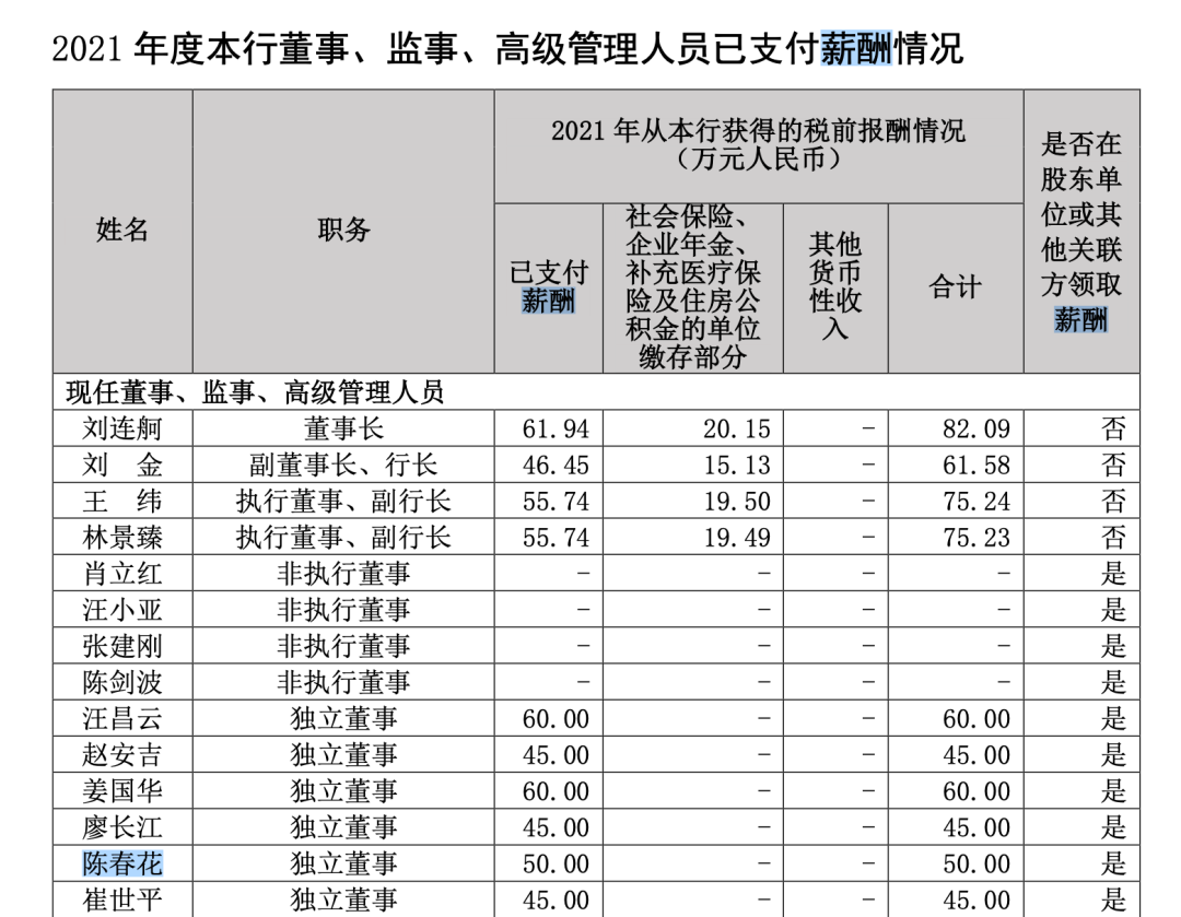 据中国银行2021年年报显示,2021年陈春花从中国银行获得的税前报酬为50万元。