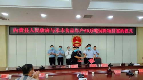 9月5日,安阳市内黄县政府与禾丰公司50万吨饲料生产项目签约仪式在县政府七楼会议室举行,县委常委、县政府常务副县长,县政府副县长桑越峰出席签约仪式。