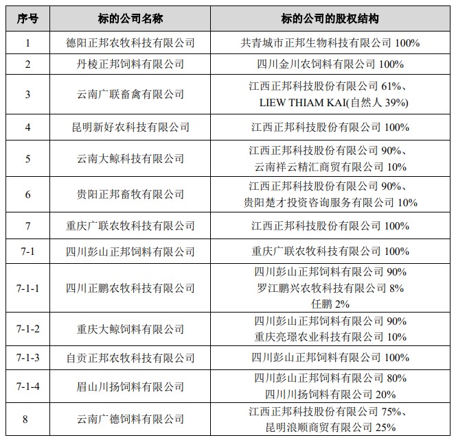 今年以来,正邦科技已公告转让了20家控股子公司的全部或部分股权。