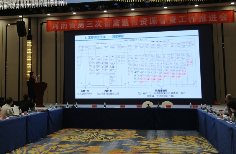 会议总结了今年上半年以来畜禽遗传资源普查的工作成绩。一是面上普查首战告捷,实现了“区域全覆盖、品种全覆盖”。二是畜禽精准鉴定采样任务配合有力。8月底前,全省各畜种采样任务已全部完成。三是性能测定任务稳步推进。自3月15日全省召开总结推进会以来,各位专家与性能测定单位主动对接,制定了各品种的测定方案和计划,明确了完成各项任务的时间节点。四是新发现资源挖掘工作亮点突出。平顶山市已完成豫中鹁鸽新发现资源鉴定的前期调查、保种群收集、测定工作,周口市已完成项城猪的调查、性能测定工作。五是普查宣传形式多样。今年上半年,省普查办制作了宣传视频,还利用河南日报、河南畜牧兽医杂志、河南畜牧兽医信息网等多种途径,宣传普查工作。