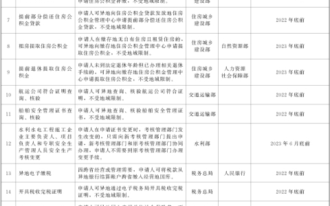 (六)完善“跨省通办”事项标准和业务规则。国务院有关部门要结合推进统一的政务服务事项基本目录和实施清单编制工作,2023年6月底前实现已确定的政务服务“跨省通办”事项名称、编码、依据、类型等基本要素和受理条件、服务对象、办理流程、申请材料、办结时限、办理结果等在全国范围统一,并在国家政务服务平台发布。国务院有关部门要加快制定完善全程网办、异地代收代办、多地联办的业务标准和操作规程,明确收件地和办理地的权责划分、业务流转程序、联动模式、联系方式等内容,进一步细化和统一申请表单通用格式、申请材料文本标准等,优化办理流程,及时更新办事指南。