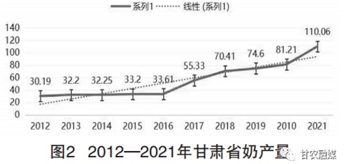 奶业惠及亿万人民,是关系国计民生的大产业。近年来,甘肃省加快奶业振兴步伐, 狠抓质量安全监管、生产发展和品牌培育创建等工作,持续推进现代奶业建设不断迈上新台阶,全省奶牛存栏量及奶产量均持续增加(图 1、图2)。
