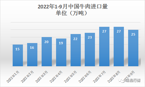 其中牛肉进口量为25万吨,较8月小幅下跌。