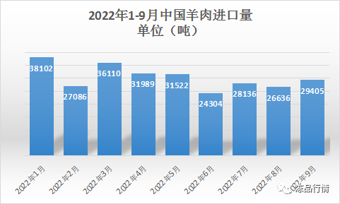 9月份羊肉进口量29405吨,环比小幅上涨。