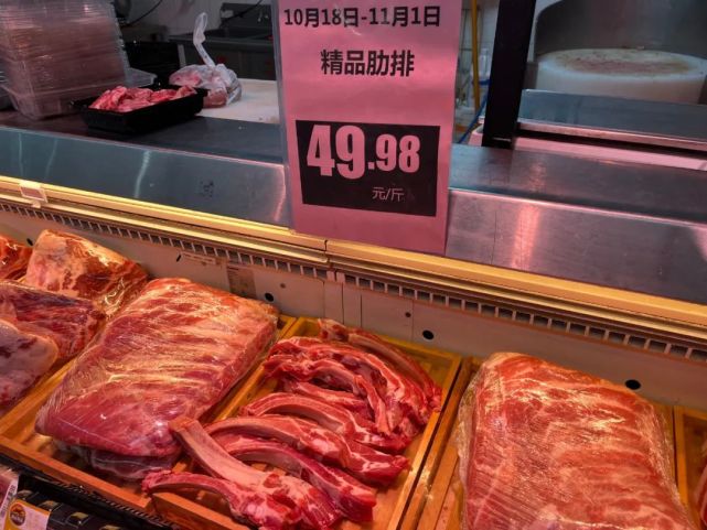 其中最贵的要数精品肋排,价格高达49.98元/斤,即便是冻肋排,价格也达39.98元/斤。