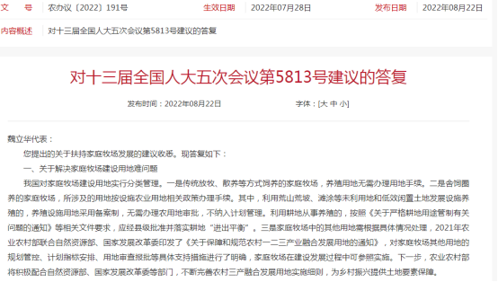 事实上,近年来国家对于家庭农场的发展是不断给予政策鼓励,今年8月,农业农村部网站公布对对十三届全国人大五次会议第5813号建议的答复,传统放牧、散养等方式饲养的家庭牧场,养殖用地无需办理用地手续