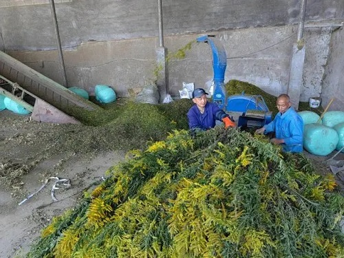 今年,他的羊场以5毛钱一斤的价格大量收购一枝黄花,平均每天收购一枝黄花5吨左右,最多的时候一天能消化7吨。这也带动附近低收入农户进行收割,一天下来能有100多元的收入。