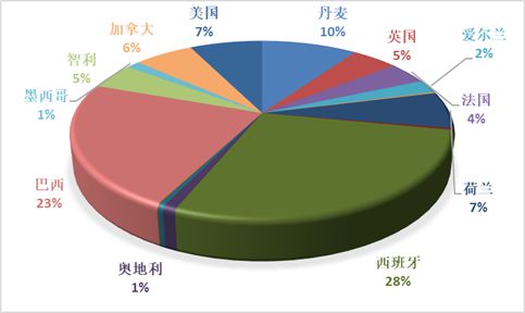 1-9月,我国鲜冷冻猪肉进口122万吨,同比下降61.2%,主要来自西班牙、巴西、丹麦、美国和加拿大等国,分别占进口总量的28.2%、22.7%、9.7%、7.4%和6.0%,合计占74.1%,同比分别下降65.5%、31.3%、59.9%、75.3%和66.4%。从各月进口量来看,1月份进口量15万吨,之后开始下降,7月份最低降至12.2万吨,8月份随着猪价反弹,进口量开始增加,9月份进口15.4万吨,同比下降26.5%。