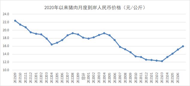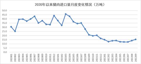 从各月进口到岸价来看,9月份进口到岸价今年以来同比首次略涨。1月份进口价格13.27元/公斤,5月份跌至12.29元/公斤,同比跌34.7%,6月份开始回升,9月份进口到岸价15.96元/公斤,同比微涨0.6%。