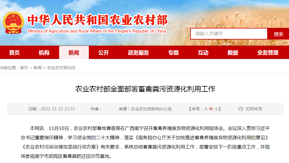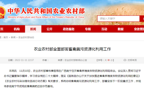 近日,农业农村部畜牧兽医局在广西南宁召开畜禽养殖废弃物资源化利用现场会。会议深入贯彻习近平总书记重要指示精神,学习领会党的二十大精神,落实《国务院办公厅关于加快推进畜禽养殖废弃物资源化利用的意见》《农业农村污染治理攻坚战行动方案》有关要求,系统总结畜禽粪污资源化利用工作,部署安排下一阶段重点工作,并现场参观南宁市武鸣区畜禽粪肥还田示范基地。