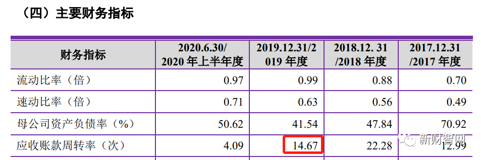 据中农联合招股书,2019年中农联合的应收账款周转率(次)为14.67.而正邦作保招股书显示,2019年中农联合的应收账款周转率(次)为15.47.美邦股份也同样出现此类情况。