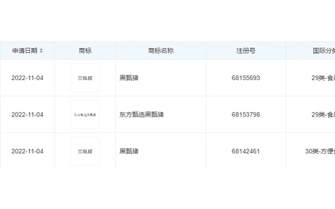 据天眼查消息,东方优选(北京)科技有限公司近日申请注册“黑甄猪”“东方甄选黑甄猪”商标,国际分类为食品、方便食品,当前商标状态为申请中。
