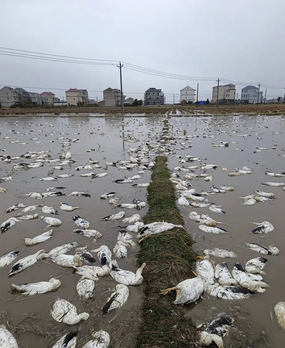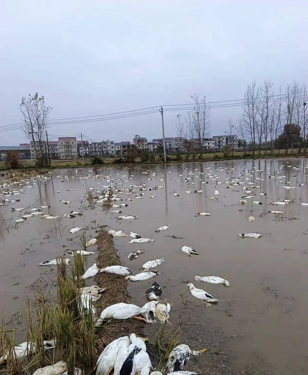 三名老人养了7000多只鸭子,他们将鸭子圈养在村里几块农田里面,原本指望着这些鸭子,能给自己带来一些收入,但没想到“意外”却发生了。