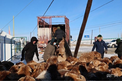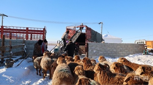 牧民正在将羊赶上车(央广网发 阿勒泰地委宣传部 供图)