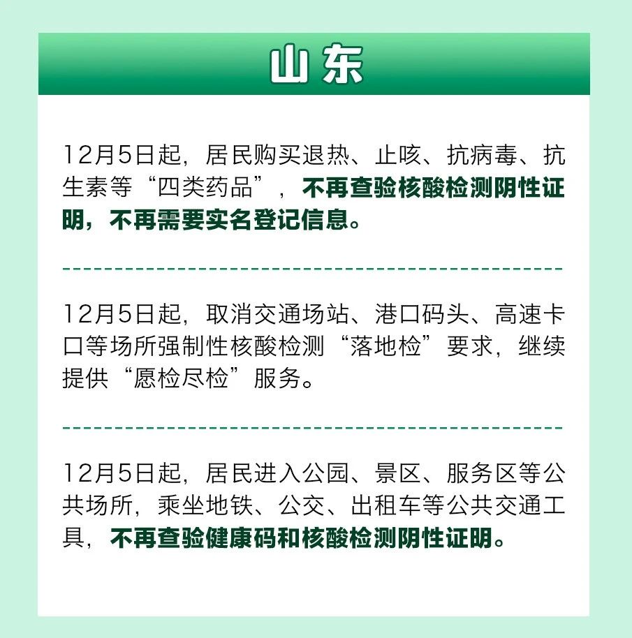12月4日郑州市发布163号通告,优化调整我市新冠肺炎疫情社会防控措施。表明不再查验核酸阴性证明!不过需要注意的是,通过“三站一场”(郑州火车站、高铁站、汽车站和飞机场)离郑人员,仍须查验48小时内核酸检测阴性证明。继续保留核酸采样小屋,满足出行人员需要。入郑人员管理,省外来(返)郑人员须提前报备,持48小时内核酸检测阴性证明,抵郑后进行“落地检”,根据检测结果和健康状况,按相关规定执行。12月4日,武汉白沙洲市场解除静默管理,绿码即可通行!不过需要注意的是,进白沙洲市场要佩戴N95口罩,进口冷链食品管理政策暂无变化,仍需按要求入库监管仓、确保四证齐全。全国多地调整疫情防控措施!