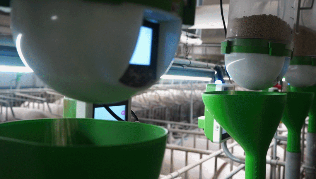 “在传统场,每天都需要人工去拉料、手投料,员工大部分时间都花费在喂料上。而智能场应用了精喂仪智能饲喂设备,可以做到动态定时定量精准饲喂。此外,输入猪只不同生长阶段对应的理想背膘值,个体体况和膘情等历史生产数据,系统就能自动计算生成猪只阶段最佳营养计划,该喂什么、喂多少、什么时候喂都有讲究。”韦场长分享道。