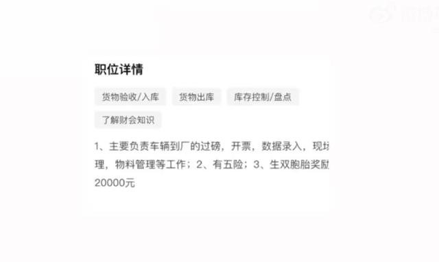近日,广西双胞胎饲料有限公司招聘启事中写明,生双胞胎奖励20000元,引起网友热议。