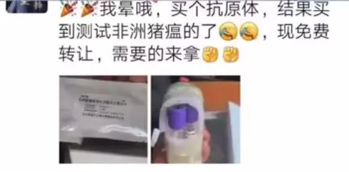 近期,好几个家族群都在转发一张图片,远看是抗原,打开一看,竟是非洲猪瘟病毒抗原胶体金测试卡。