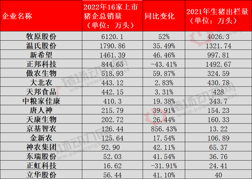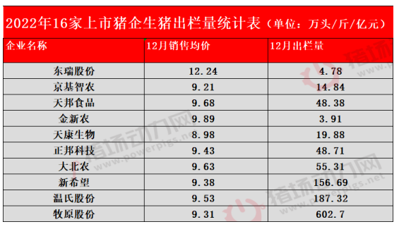 进入2023年,各大养猪上市企业陆续公布2022年12月份生猪出栏数据,随着年底收官,年度出栏数据也随之出炉,猪场动力网通过总结16家上市猪企数据简报,分别从出栏量、出栏增速、目标完成率、销售价格、养殖成本等5个维度对其进行总结及盘点。