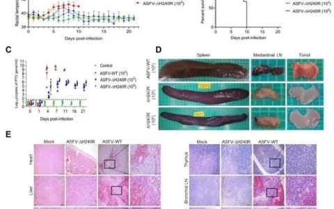 近日,中国农业科学院哈尔滨兽医研究所在非洲猪瘟病毒(ASFV)致病机制研究方面取得新进展。研究发现,ASFV的H240R基因通过抑制宿主炎性因子产生影响ASFV致病力,缺失H240R基因显着促进ASFV诱导的炎性因子产生,致弱ASFV对SPF猪的致病力。相关研究结果于1月19日以“Deletion of African Swine Fever Virus (ASFV) H240R Gene Attenuates the Virulence of ASFV by Enhancing NLRP3-Mediated Inflammatory Responses”为题发表在《Journal of Virology》杂志上。