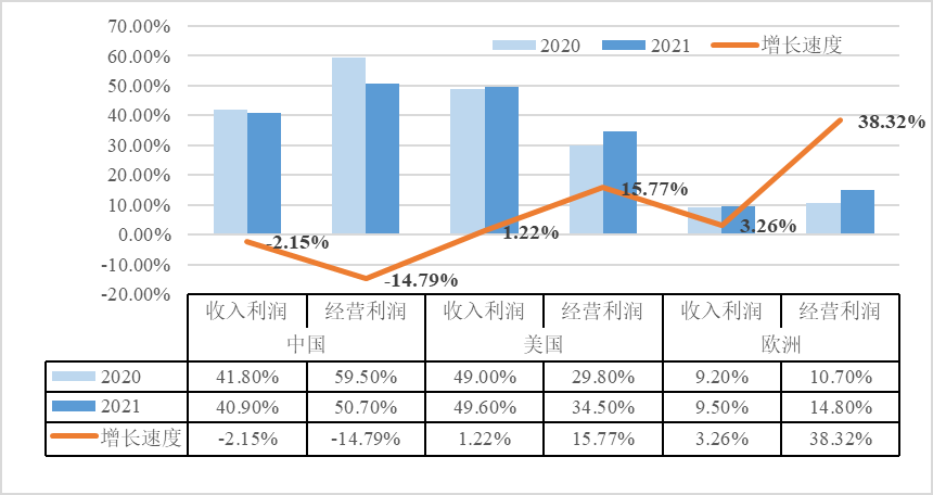 图1 万州国际不同国家(地区)业务收入及经营利润占比与增速变化情况