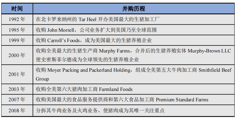 表1 史密斯菲尔德并购历程