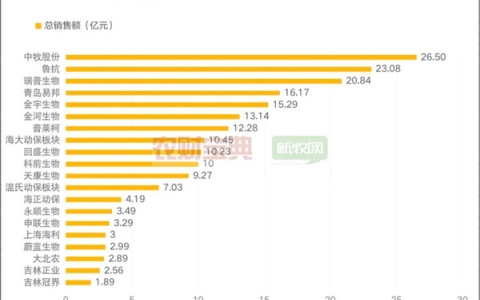 在统计的上市企业化药销售额榜单中,鲁抗以23.08亿元营业额成为化药领域的头名,中牧化药板块以14.37亿元紧随其后。