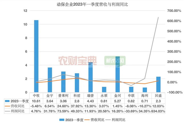 多数企业利润同比增幅比营收增幅更大,回盛生物2023年一季度利润同比增长高达634.03%,遥遥领先。普莱柯一季度利润增幅达73.59%,科前利润增幅达49.33%。