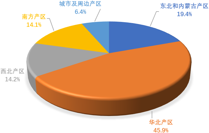 图5 2023年一季度不同产区参测牛占比情况