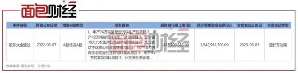 2023年6月3日,大北农发布公告显示,决议公司2022年度定增预案的有效期自2022年6月22日股东大会审议通过之日起12个月。