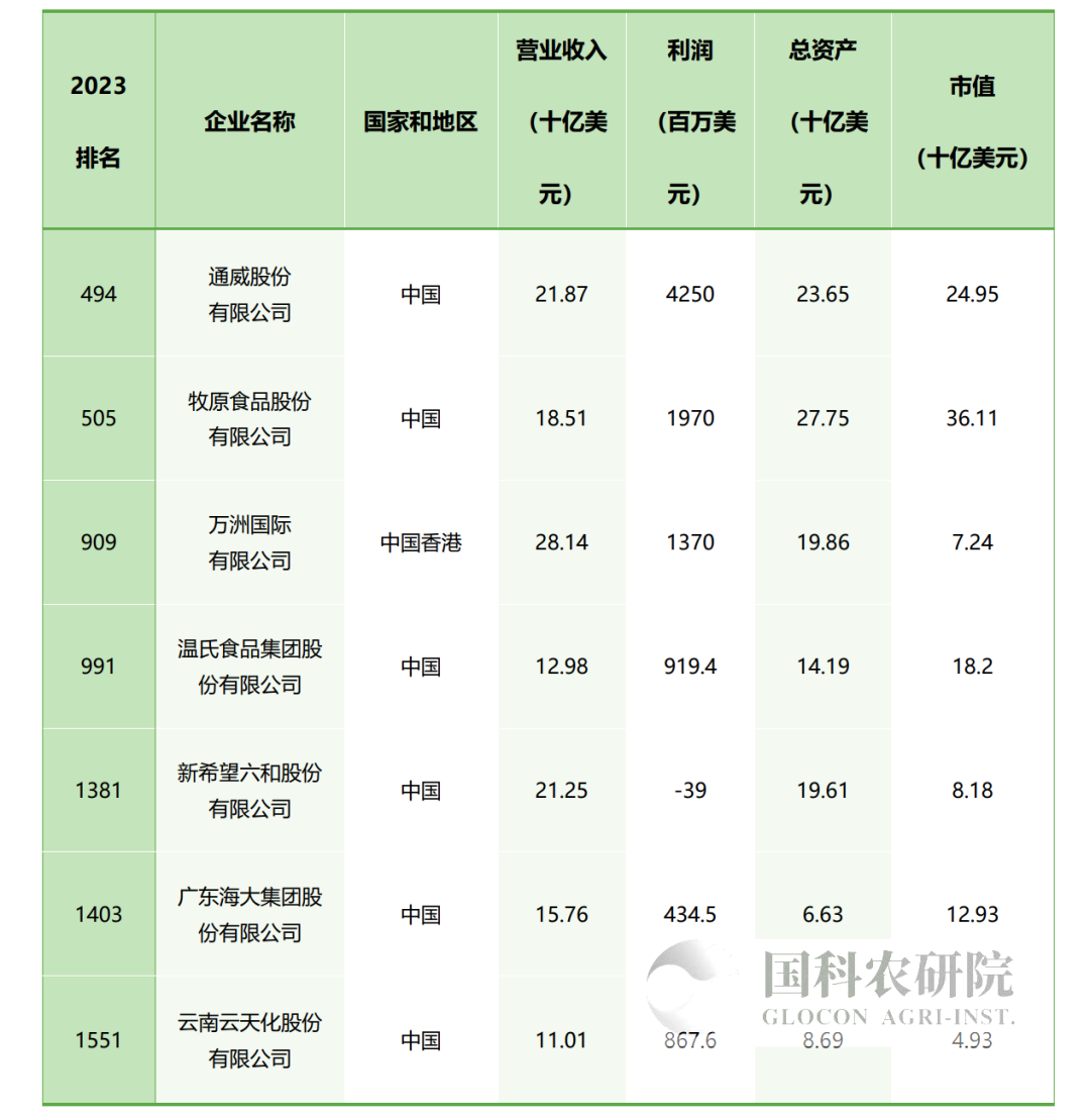 7家农牧企业,14家食品加工企业上榜,福布斯《2023全球企业2000强》名单发布