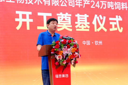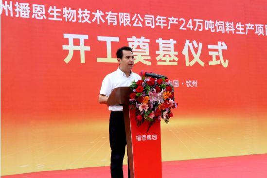钦北区经济技术开发区管委会主任李兴兆代表钦州管委会对播恩集团钦州项目的开工建设表示热烈的祝贺。他指出,此次播恩集团钦州项目落户钦州,是钦州市“建大港、壮产业、造滨城、美乡村”的生动实践,将进一步完善钦北区皇马工业园区饲料加工及养殖产业链,对推动园区及周边养殖市场经济转型升级具有重要意义和带动作用。