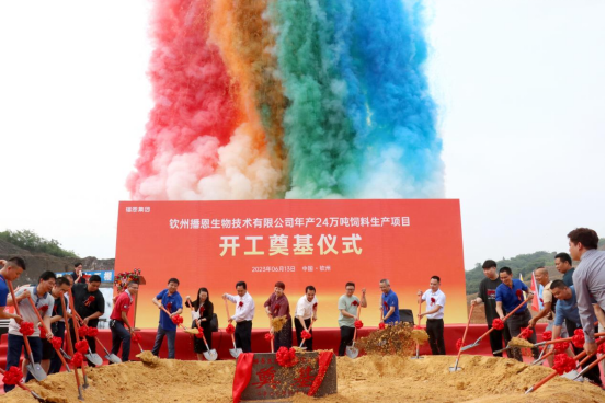 2023年6月13日上午,钦州播恩生物技术有限公司年产24万吨饲料生产项目(以下简称播恩集团钦州项目)开工奠基仪式在广西钦州市隆重举行,标志着播恩集团钦州新工厂建设正式拉开帷幕,集团的发展翻开新的篇章。