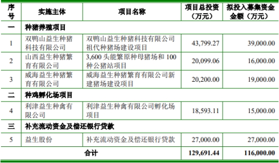 2023年6月12日,益生股份发布了2022年度向特定对象发行A股股票募集说明书(修订稿)。本次向特定对象发行股票的募集资金总额(含发行费用)为不超过116,000.00万元(含本数),扣除发行费用后的募集资金净额拟用于种猪养殖项目、种鸡孵化场项目、补充流动资金及偿还银行贷款。