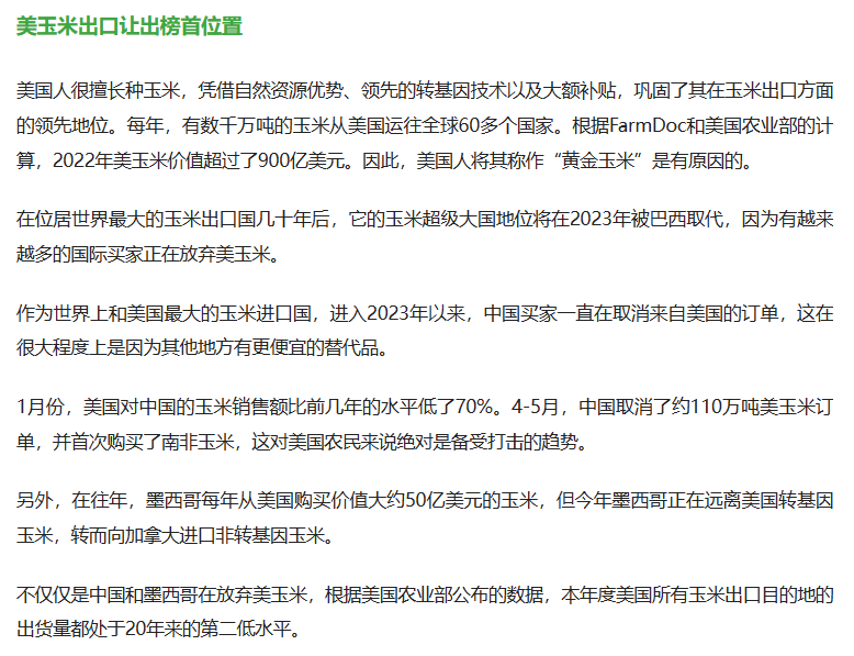 成为全球第一大玉米出口国