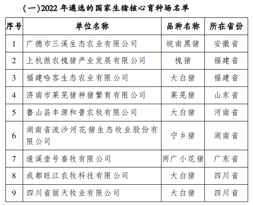 附件1:2022年遴选的国家畜禽核心育种场、良种扩繁推广基地、核心种公猪站名单