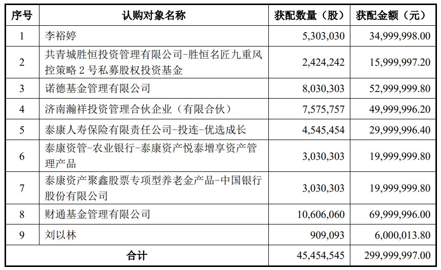 公告显示,唐人神计划非公开增发4545万股,募集资金3亿元,发行价格为6.60元/股。公告对最终竞价结果进行了公布。