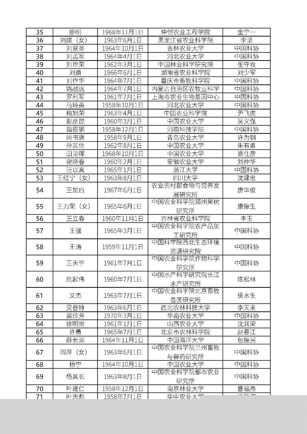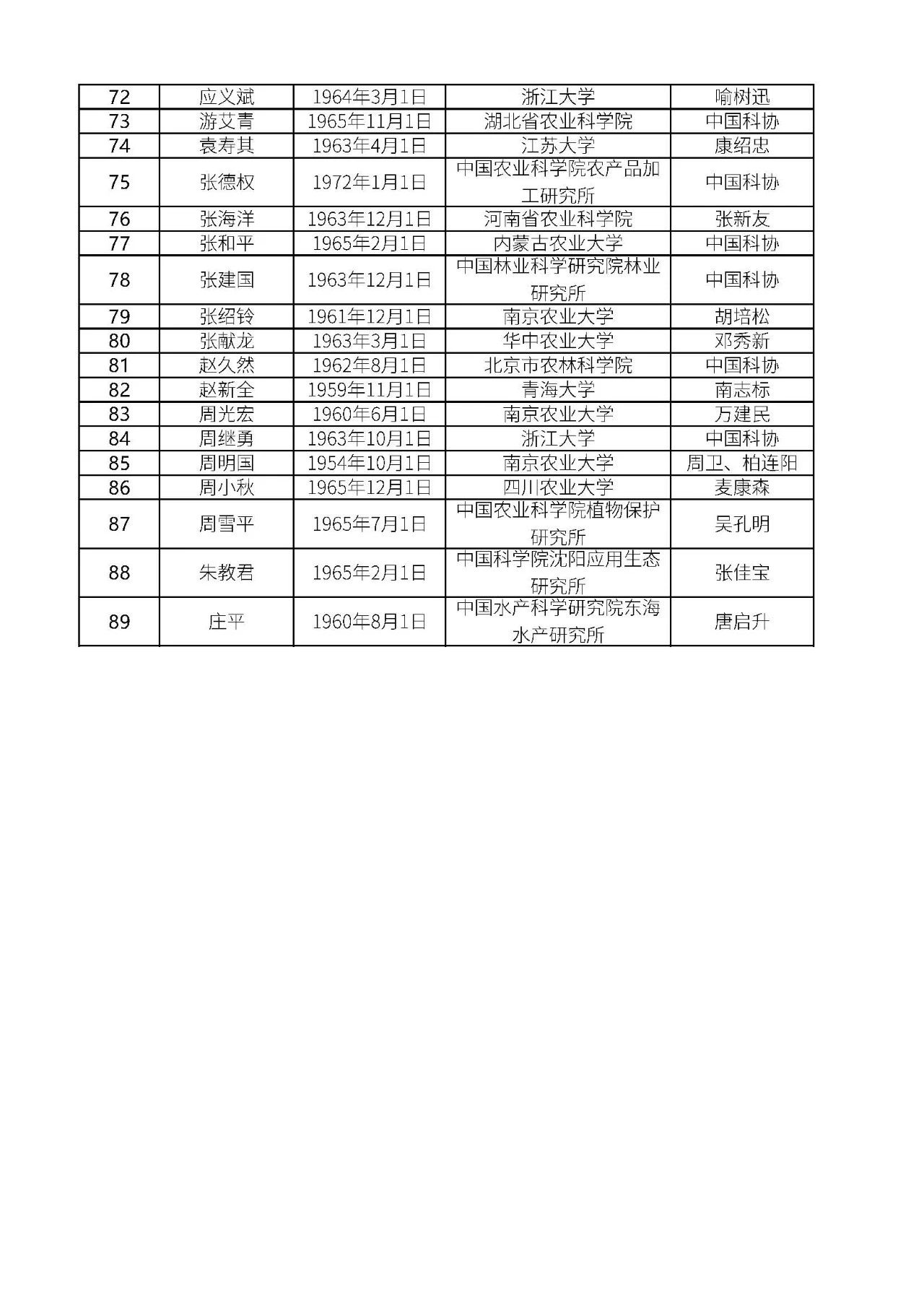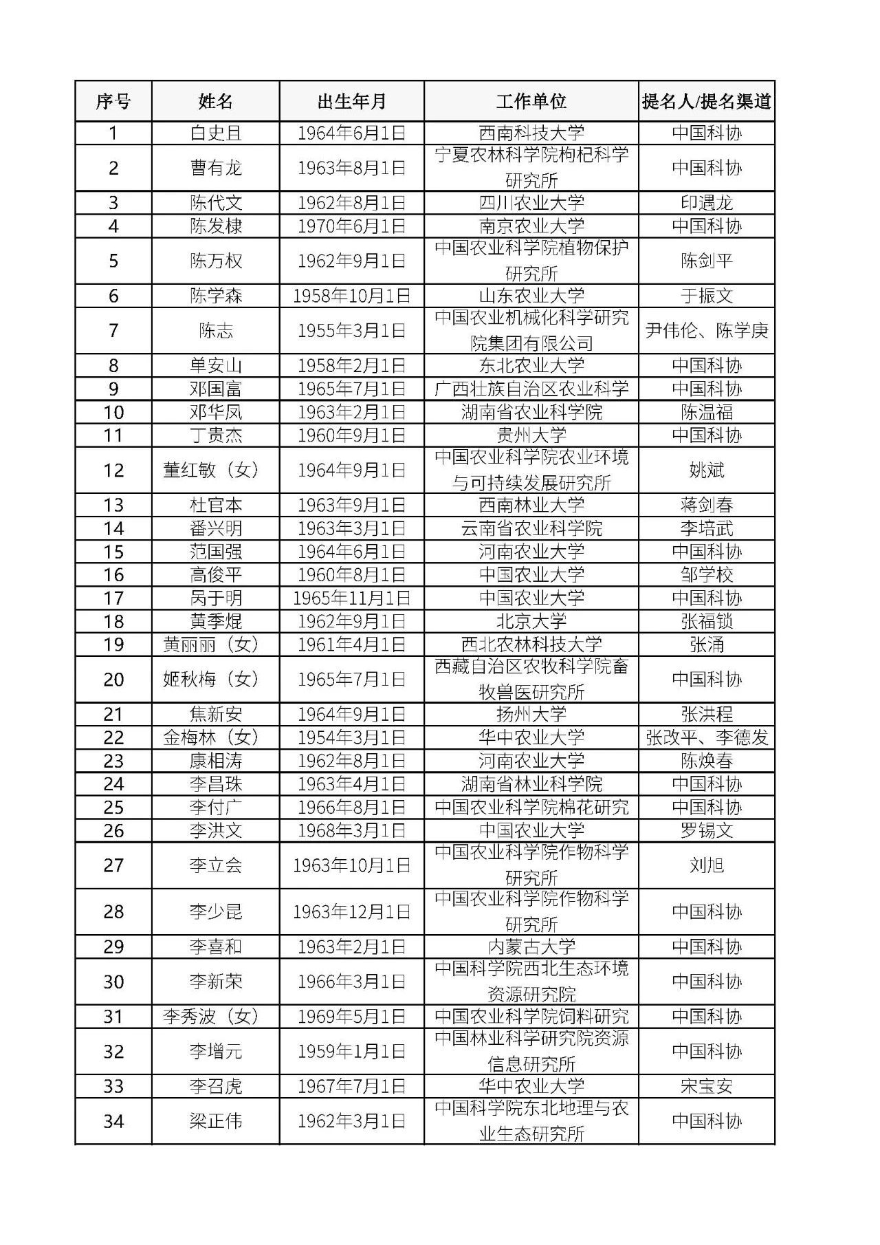 中国工程院2023年农业学部89位院士增选有效候选人名单