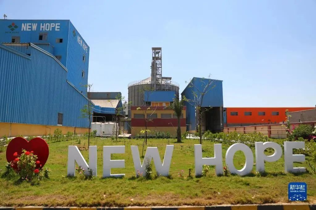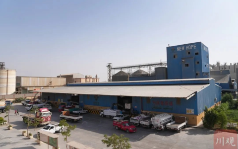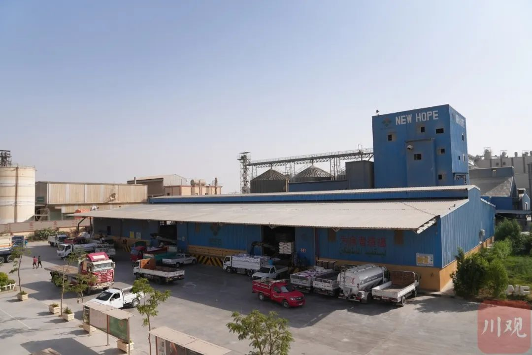 厂房外高耸的“新希望”英文厂牌分外醒目。这里是新希望六和股份有限公司(以下简称“新希望”)在埃及的第一座厂房。
