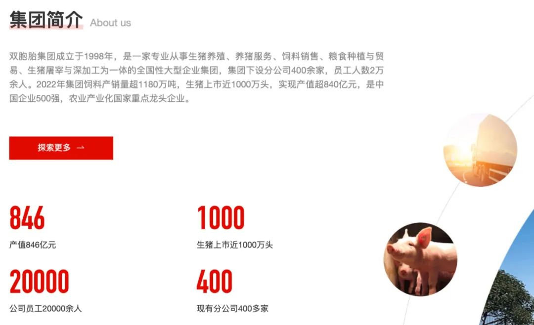 公开资料显示,双胞胎集团以饲料业务起家,2022年销售猪饲料近1200万吨。公司于2017年开始涉足生猪养殖,经过5年发展,其2022年生猪出栏量约为1000万头,位居全国第四。同期,*ST正邦的生猪出栏量约为845万头。