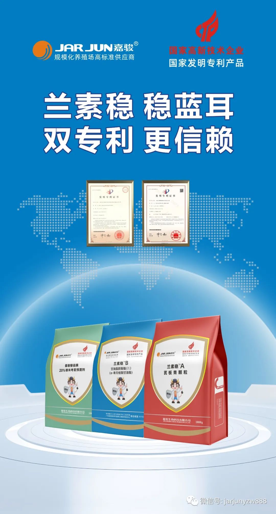 猪繁殖障碍与呼吸道综合征又称蓝耳病,是猪场的头号免疫抑制性疾病,近年来“小非”横行与蓝耳病的防控不到位有很大的关系,正所谓蓝耳不防非瘟必狂!近年来嘉骏生物不断加大科研投入,与华南理工大学、青岛农业大学、河南农业大学、华中农业大学、中国农科院兰兽研、广东省脂类科学与应用工程技术研究中心等多家高校及科研机构形成产学研强强联合,在防治蓝耳病兽药制剂方面取得了突破性进展。