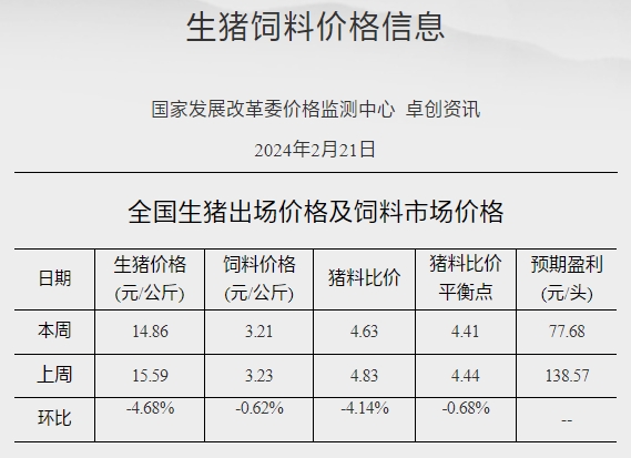 未来生猪每头盈利77.68元