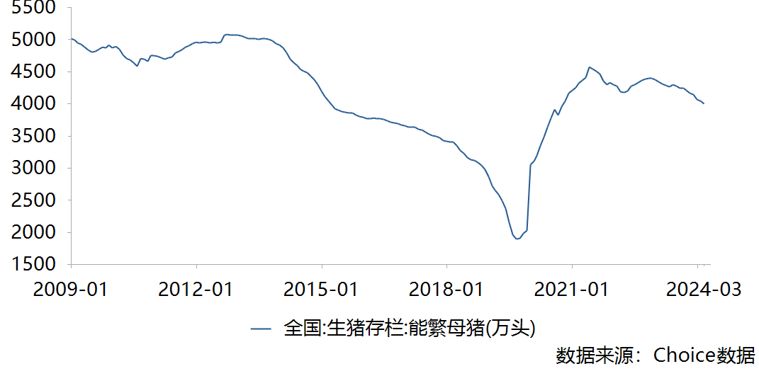 (全国能繁母猪走势图图片来源:choice)