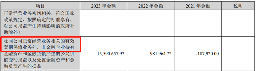 报告显示,为规避和防范主要原材料、产品价格及外汇汇率波动给公司带来的经营风险,公司针对生产经营相关的原材料、产品及外汇开展套期保值、远期结售汇及利率互换等业务,业务规模均在预计的采购、销售业务规模内,具备明确的业务基础。报告期内,公司商品及外汇套期保值衍生品合约和现货盈亏相抵后的实际收益金额合计为6218.57万元。
