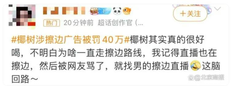 5月8日,“椰树涉擦边广告被罚40万”话题冲上热搜。