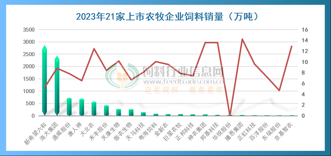 1、21家上市农牧企业饲料销量9029万吨,不含温氏、牧原等无商品料的企业,千万吨级的仍然是新希望和海大。