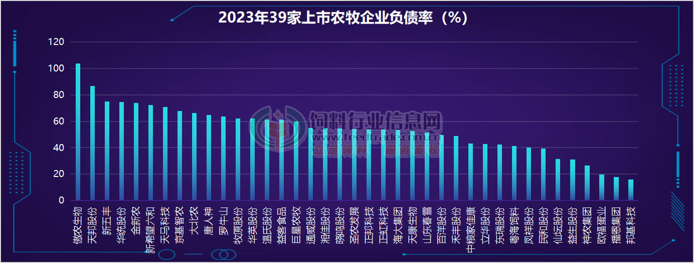 2、大北农、唐人神、牧原、温氏等负债略低,在60%左右,猪企中神农集团负债率最低,仅有26.41%。海大集团