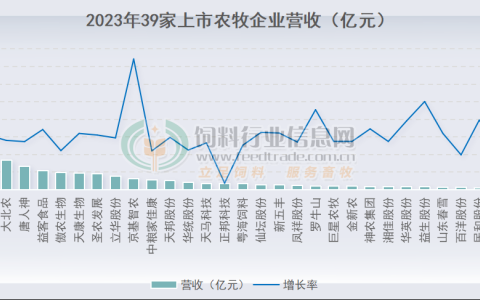 2023年上市农牧企业年报已经陆续公布,饲料行业信息网小编梳理了39家农牧企业的业绩数据,按照营收、净利润、饲料产/销量、生猪出栏量和负债率分别排名,看看2023年有哪些变化?
