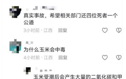 5月14日,有网友发帖称,5月10日,江西宜春丰城市,有一艘载1000吨玉米的安徽籍货船在此停靠时,4人登轮转运玉米期间疑因吸入玉米发酵产生的气体遇难。据新京报“我们”视频5月15日报道,当地应急部门证实接到4人死亡报告,正调查原因。