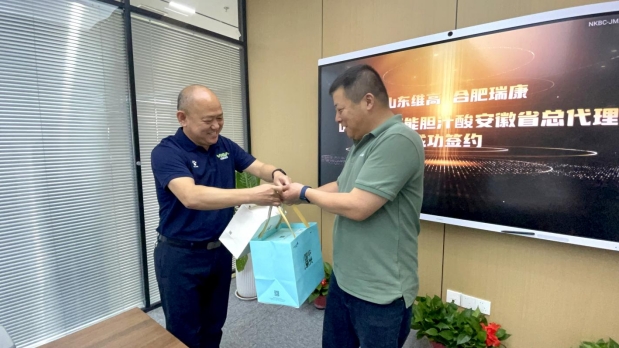 在热烈的签约仪式倒计时声中,刘洪新总经理与张智总经理共同签订了维高舒能胆汁酸安徽市场总代理协议书,并触发了仪式启动球,标志着合肥瑞康畜牧科技有限公司正式成为山东维高舒能胆汁酸安徽省总代理,开启了双方合作的新篇章。